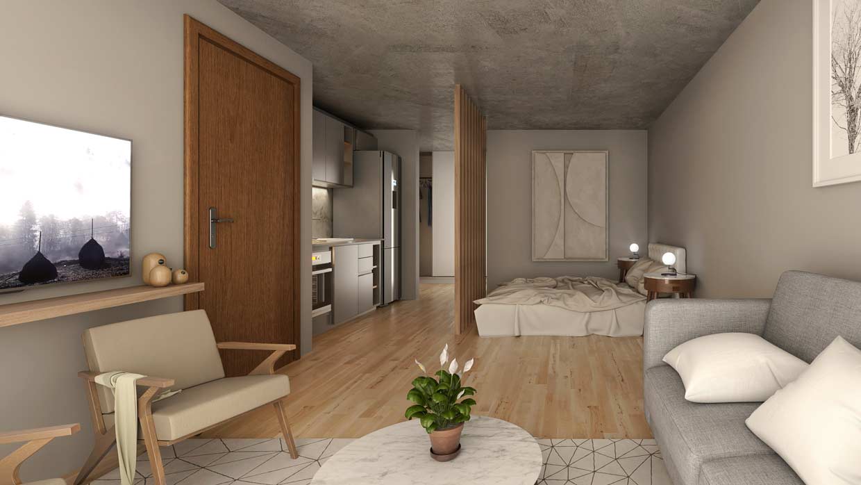 Unidades monoambiente, 1 dormitorio con terraza de uso exclusivo y 2 dormitorios con terraza de uso exclusivo.