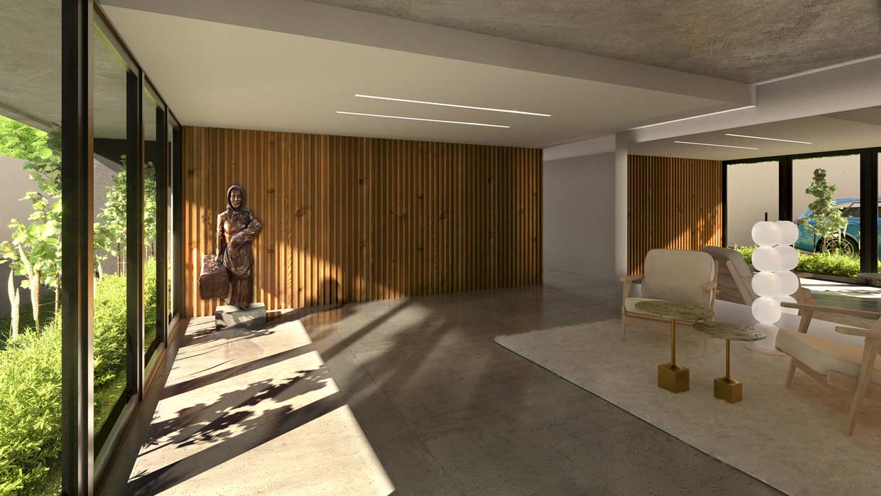 Está compuesta por un espacioso, luminoso y moderno Hall de entrada, sala de reuniones, jardines internos, 12 cocheras y biciparking.